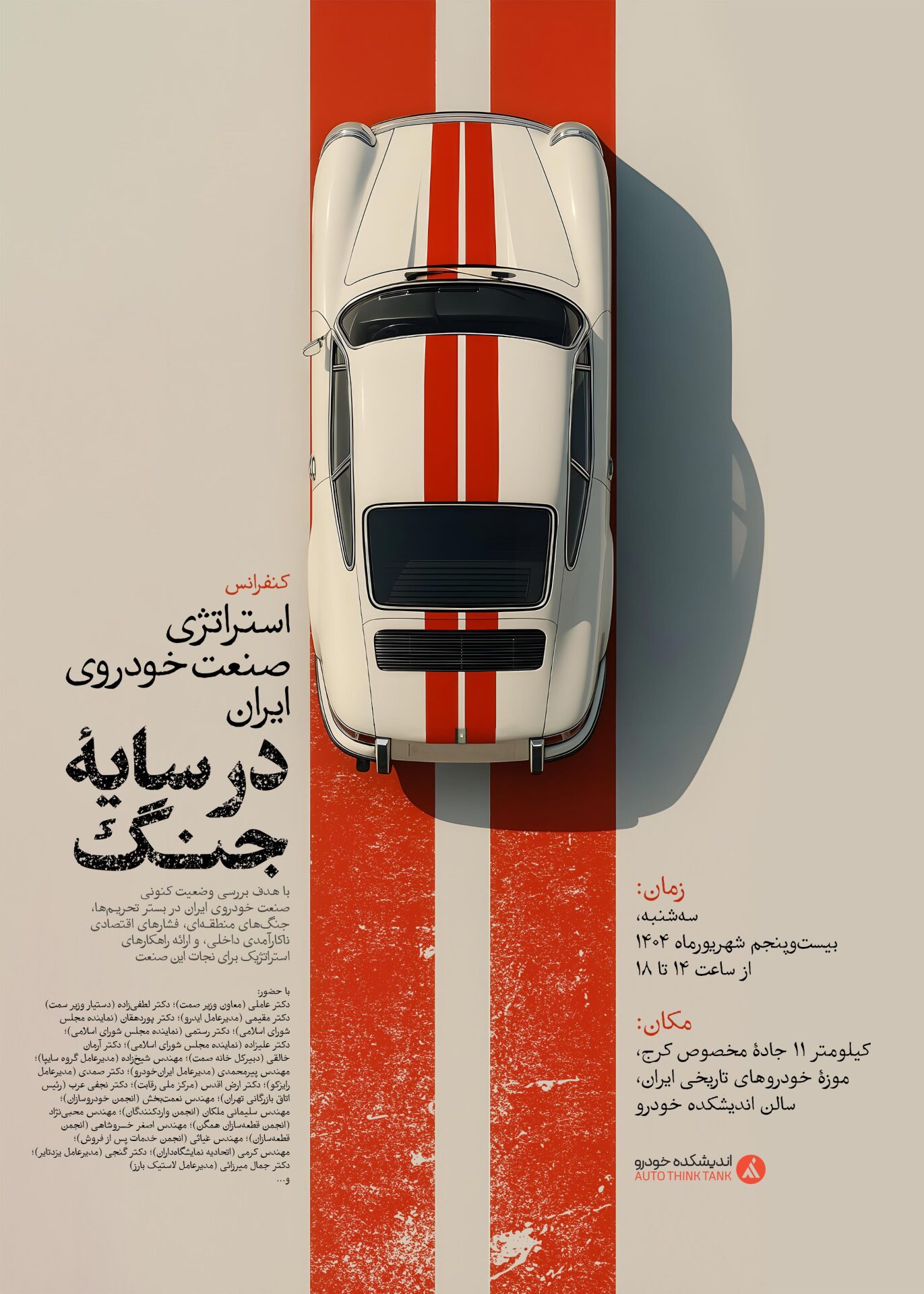 در یکی از حساسترین برهههای تاریخی صنعت خودروی کشور، اندیشکده خودرو مفتخر است همایش «استراتژی صنعت خودروی ایران در سایه جنگ» را برگزار کند. این رویداد بزرگ علمی و تخصصی روز ۲۵ شهریور ۱۴۰۱ از ساعت ۱۴ الی ۱۸ در محل موزه خودروی ایران برگزار میشود و محلی برای تلاقی اندیشهها و تصمیمسازیهای کلان در حوزه صنعت خودرو خواهد بود. در این همایش، نمایندگانی از وزات صمت؛ نمایندگان مجلس، مدیران عامل خودرو سازان و قطعهسازان، نخبگان صنعتی و اقتصادی و کارشناسان برجسته کشور به بررسی ابعاد مختلف صنعت خودرو، چالشها، فرصتها و آینده این صنعت در شرایط کنونی داخلی و بینالمللی خواهند پرداخت.